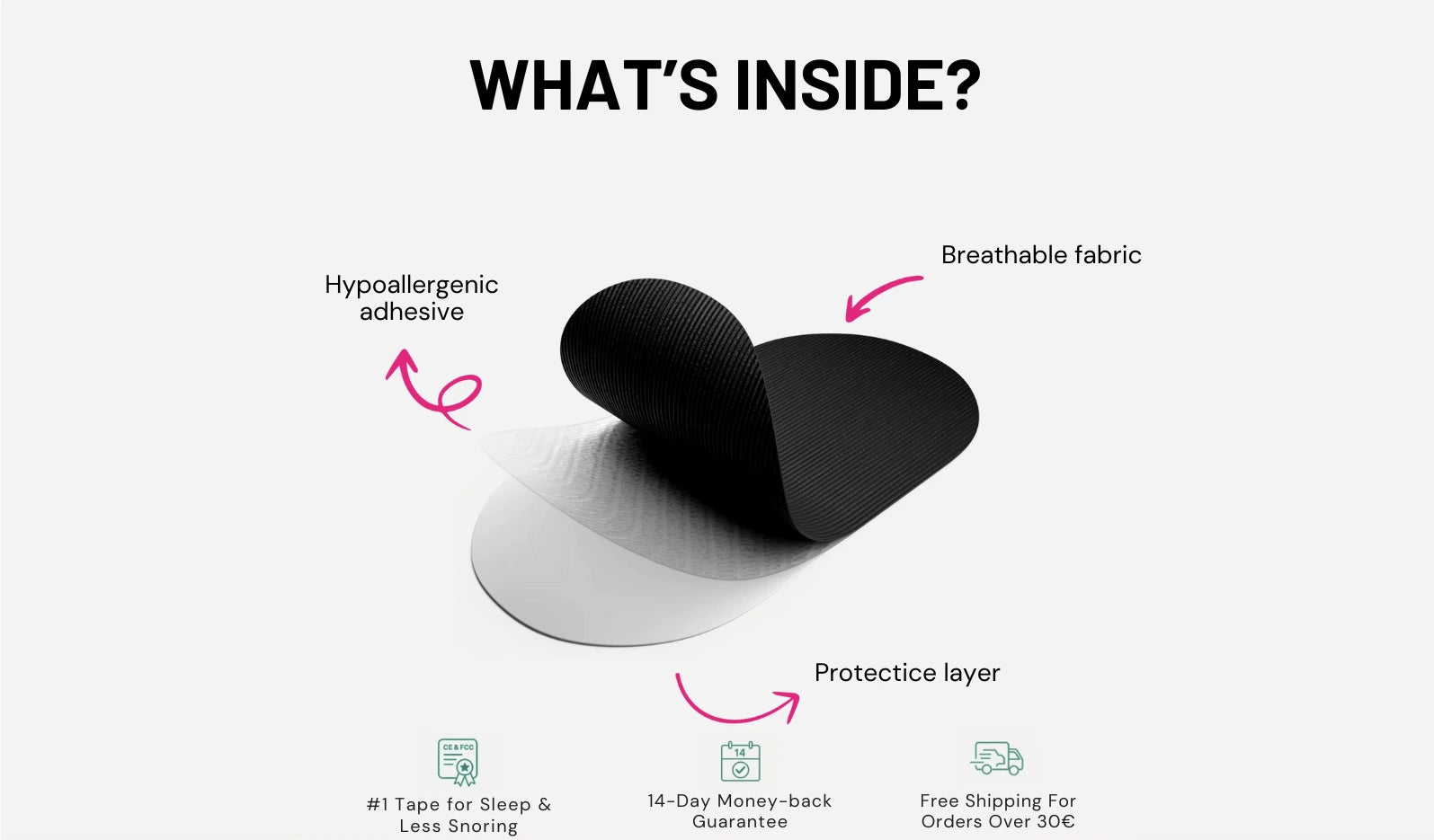Our tapes help reduce snoring and improve breathing quality, allowing you to sleep more deeply and wake up rested and full of energy.